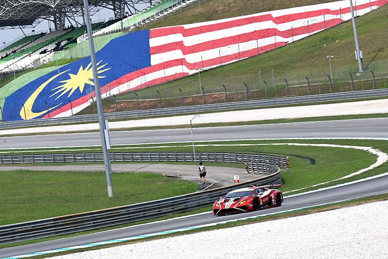 今大会は南国の暑さも考慮して、金曜日の夕方に予選、土曜日の夕方に決勝という変則スケジュール。GT300クラスのチームは走行経験がほとんどないというチームも多く、木曜日から2回の練習セッションが設けられた。小暮の「VENTENY Lamborghini GT3」は1回目のセッションでクラス2番手タイムをマーク。2回目のセッションは7番手にとどまったが、予選のQ1突破、そしてポールポジション争いに挑むには上々の滑り出しだ。迎えた公式予選は、相棒の元嶋佑弥選手がQ1を担当。Aグループでの出走となったが、このグループではスポット参戦の地元チームがトップタイムをマークし、元嶋選手はそこから約0.5秒差の2分3秒628で5番手に滑り込み、Q2を担当する小暮にバトンをつないだ。公式練習ではアタックのタイミングやタイヤの状況などもあり2分4秒台のタイムにとどまっていた小暮だが、久々のGTレースとなったセパンのコースは走行が進むにつれてタイヤのラバーがどんどんと乗ってくることで路面状況が大きく向上。その効果もあり、Q2でのアタックはそれまでのコースレコードを上回る2分2秒603をマークし、3番手に。同じJLOCから参戦する87号車も4番手につけ、ランボルギーニのパフォーマンスの高さを示し、2台そろって2列目という好グリッドを得た。